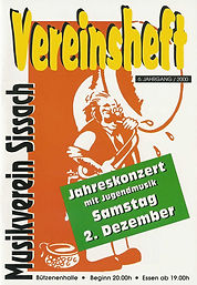 Jahreskonzert 2000, ein paar Bilder ● Fritz Wirtlin, Ehrenmitglied, fast ein Jahrhundert MVS ● 75 Jahre Trachtengruppe Sissach ● Kant. Musiktag Buus, 19. Mai - Brigitte Blapp-Manhart, 20 Jahre Vorstand, ein Rückblick ● JUMU/JBOD: Oliver Waldmann, der "NEUE" Dirigent; Grillplausch; Kanuplausch auf der Reuss ● Neue Aktive: Andrea Hasler, Tobias Brunner ● Wer rastet der rostet, Gruftikurs...oder... ● Wir gratulieren unserem Max Horand, 51 Aktivjahre ● Die Geschichte des MV Sissach, Teil 6
